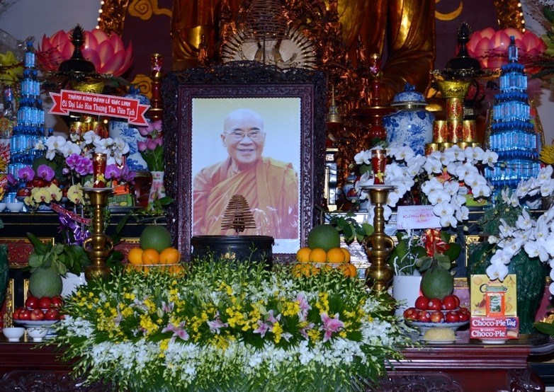 Di ảnh Tôn Sư cố Hòa thượng được tôn trí trang nghiêm tại chánh điện. Trước đó, để bày tỏ niềm kính tiếc, kết nối tình Linh sơn cốt nhục cũng như sự thương kính đối với bậc chân tu trưởng thượng chư Tăng - Ni và các đoàn Phật tử tại các tổ đình và chùa lân cận đã đến kính viếng với nhiều vòng hoa và phướn liễn.