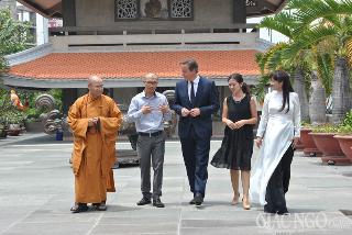 Đến chùa Vĩnh Nghiêm lễ Phật và tham quan, Thủ tướng Anh David Cameron đã được Thầy trụ trì cùng chư Tăng đón tiếp nồng hậu và giới thiệu về những công trình kiến trúc của chùa.