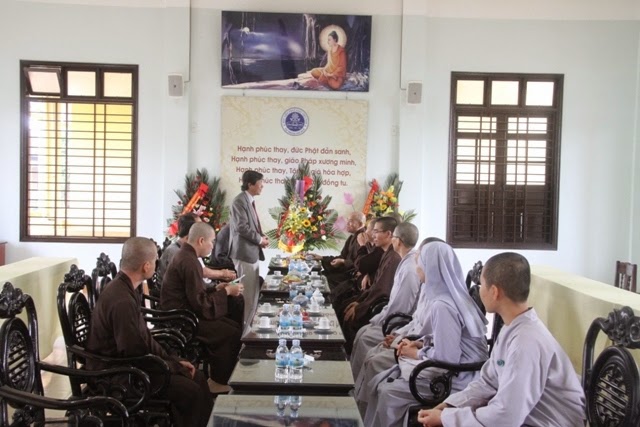 Đón tiếp quý phái đoàn có Thượng tọa Thích Nguyên Thành - Ủy viên HĐTS, Phó Trưởng Ban Giáo dục Tăng Ni TW, Phó Viện trưởng Học viện Phật giáo Việt Nam tại Huế; Thượng tọa Thích Nguyên Đạt - Phó Viện trưởng kiêm Trưởng Phòng đào tạo Học viện Phật giáo Việt Nam tại Huế; Đại đức Thích Quang Tư - Phó Viện Trưởng kiêm Trưởng Phòng Sinh viên vụ Học viện Phật giáo Việt Nam tại Huế cùng quý chư tôn đức các Phòng Ban của Học viện.