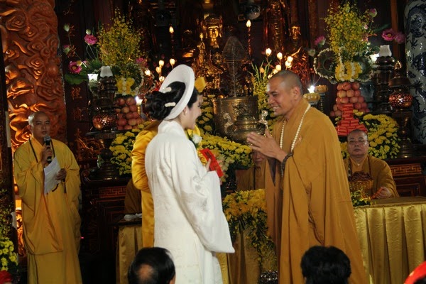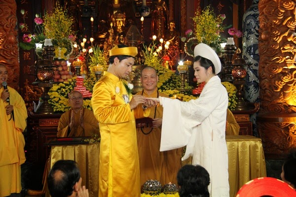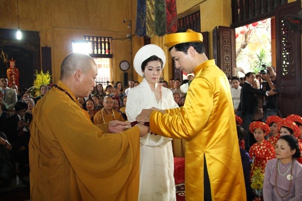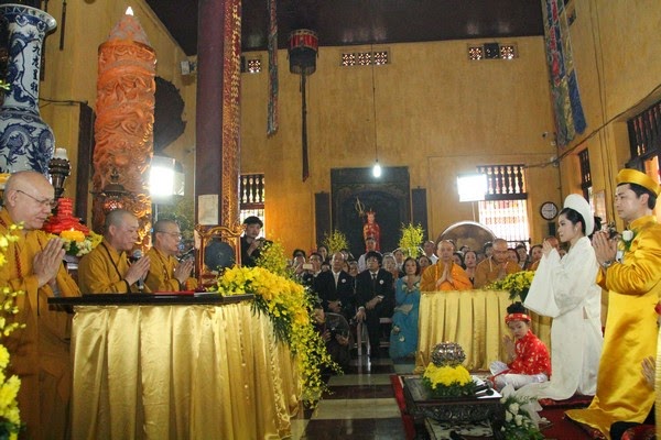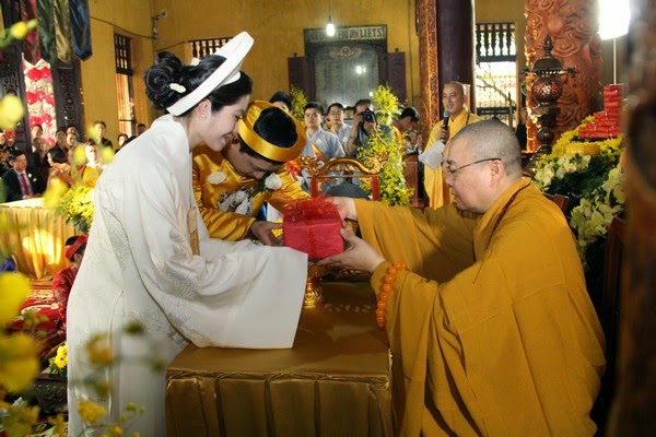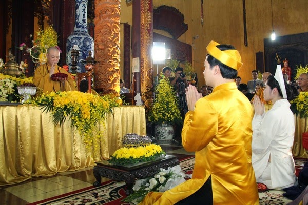 SVO - Hôn nhân là một bước ngoặt lớn trong cuộc đời, là hạnh phúc hòa hợp giữa đời sống tâm linh và vật chất, giữa tình yêu thương và sự hướng thượng. Trong thời đại ngày nay giữa vòng xoay náo nhiệt của cuộc sống, để tìm về một chốn tĩnh lặng, với khói trầm ngào ngạt, trong lời kinh nhiệm mầu và trong sắc y vàng rực rỡ nhiều Phật tử đã nương về cửa Phật cung thỉnh chư Tăng hộ niệm cho hôn lễ của mình.